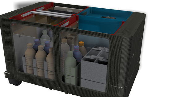 Use of the BUYROCKS should not be restricted merely to shopping. Customised adaptations will allow it to be used as a workshop or spare parts trolley for industry and trades. Modified larger versions for the delivery vans are also planned.