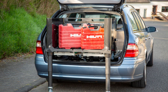 Since many car models no longer have a spare wheel, the space freed up is now used for the docking station. The docking station is installed under the trunk to save space. If necessary, it can also be detached from the floor panel, creating additional storage space.